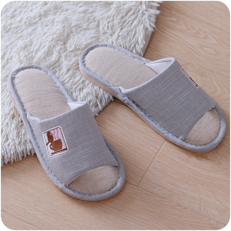 情侶托鞋軟底防滑家居開口亞麻棉時尚拖鞋春夏四季地板女男式室內