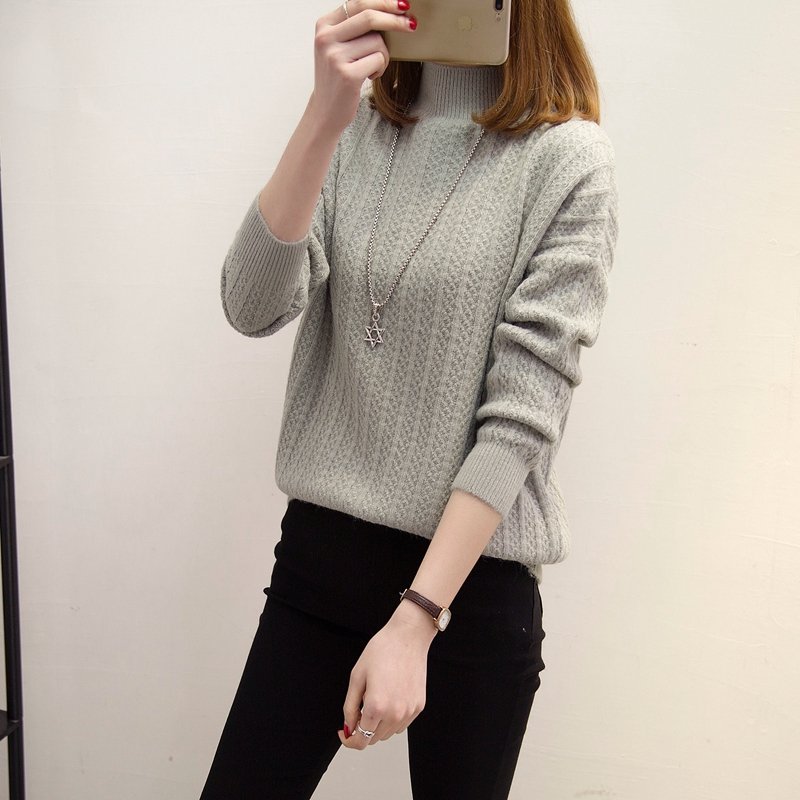 / 半高領套頭針織衫毛衣純色打底衫長袖韓版學生女裝冬裝新款潮
