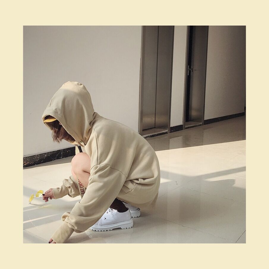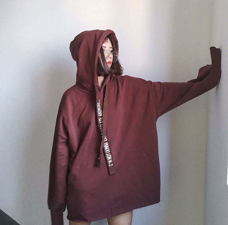 復古韓風秋冬簡約字母連帽套頭上衣寬松中長款個性學生衛衣女