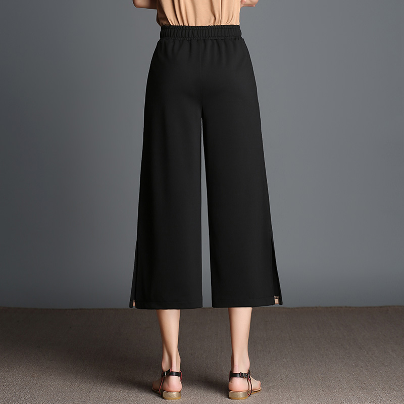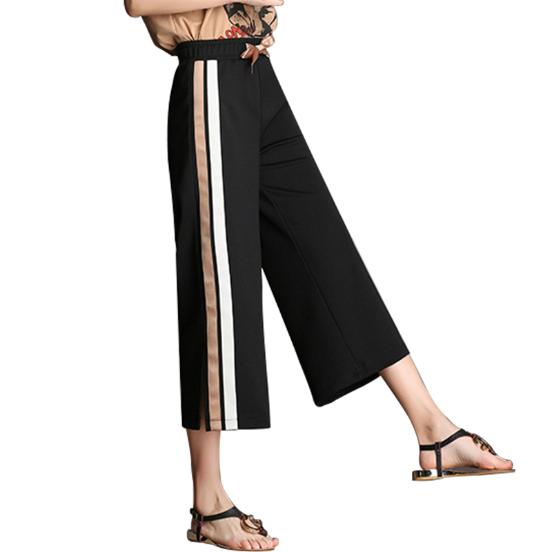 / 闊腿褲女九分褲高腰韓版學生顯瘦春裝新款百搭條紋寬松褲子夏
