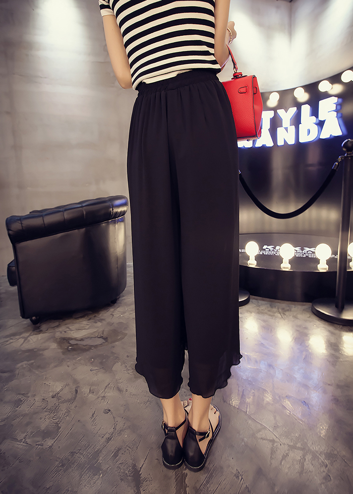 ulzzang闊腿褲韓國甩褲2016新款女九分褲薄學生夏季褲裙長款雪紡z