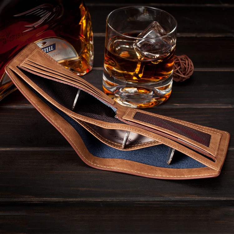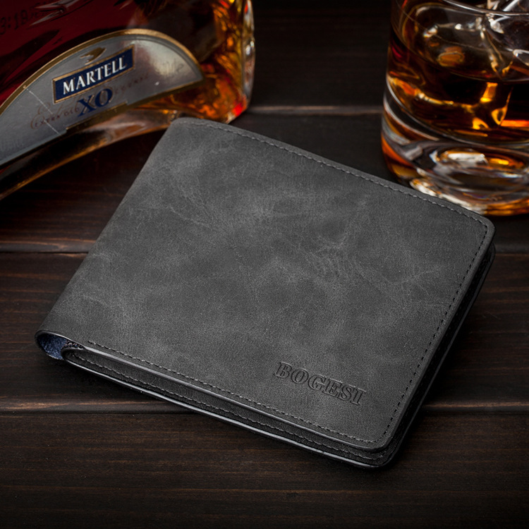 商務休閑男士復古PU皮錢包韓版新款磨砂皮錢包男短款男士錢夾潮