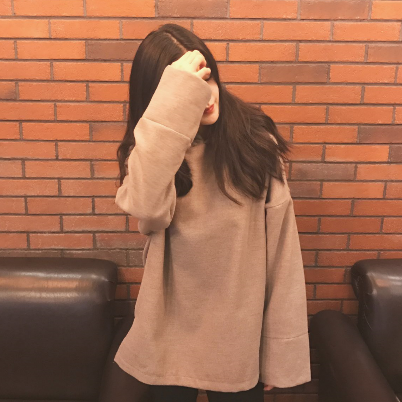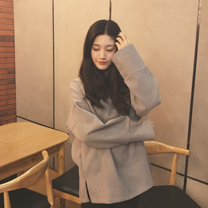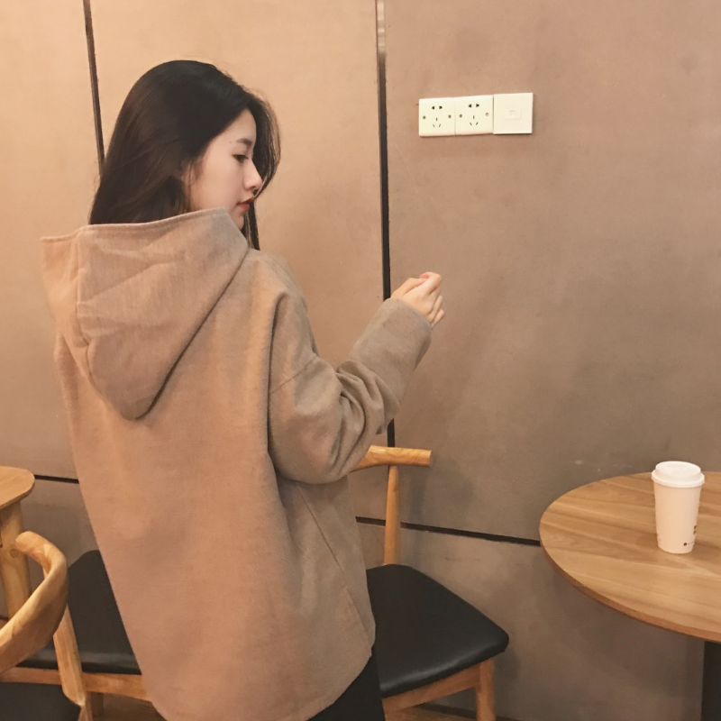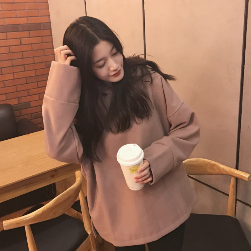 / 韓國復古學院風秋冬款保暖雙面呢寬松連帽開叉套頭衛衣外套女