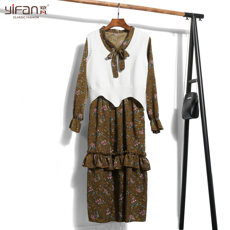 / 春夏雪紡拼接百褶連衣裙女裝韓版碎花長袖打底沙灘裙新款