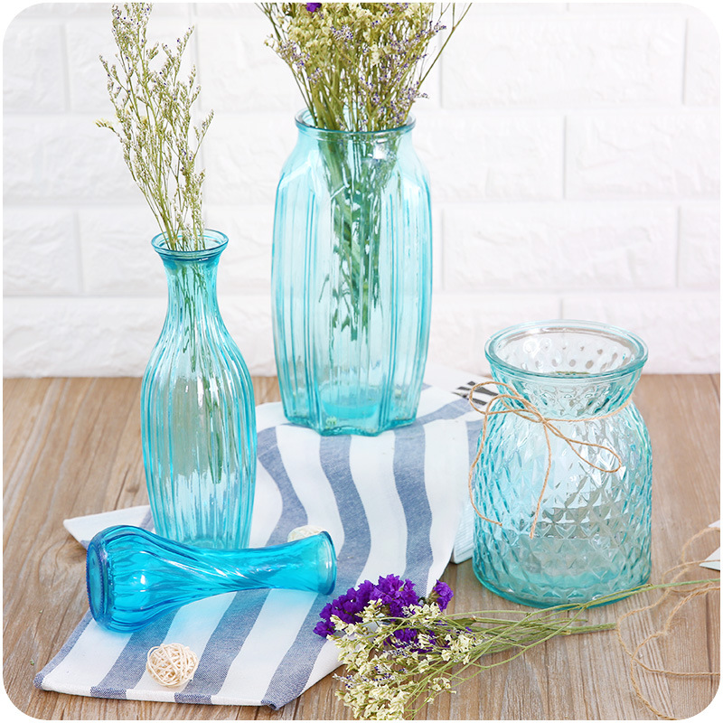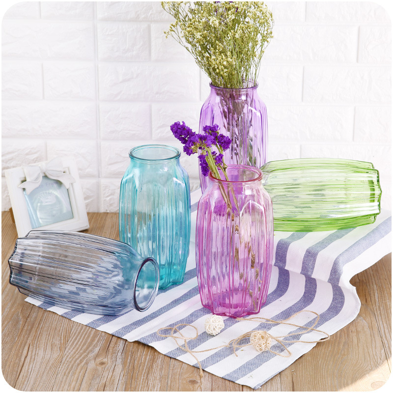 創意簡約螺紋小花瓶加厚清新桌面插花瓶鮮花干花玻璃彩色瓶子裝飾