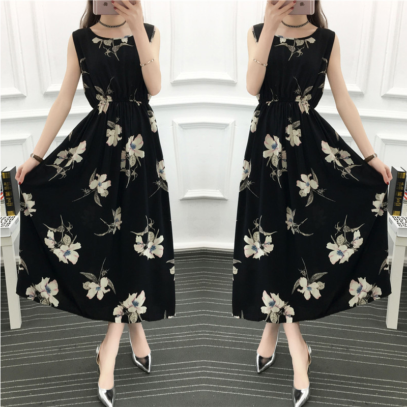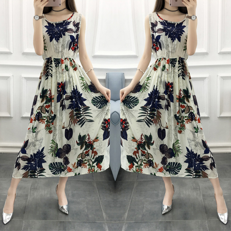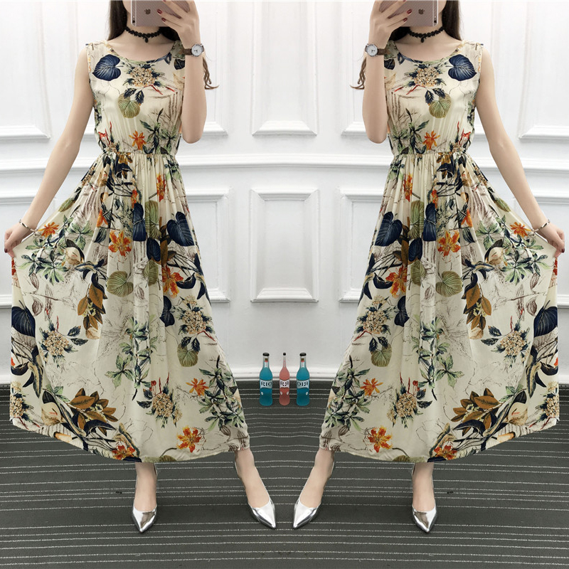 波西米亞碎花連衣裙女無袖民族風沙灘裙海邊度假裙長裙純棉