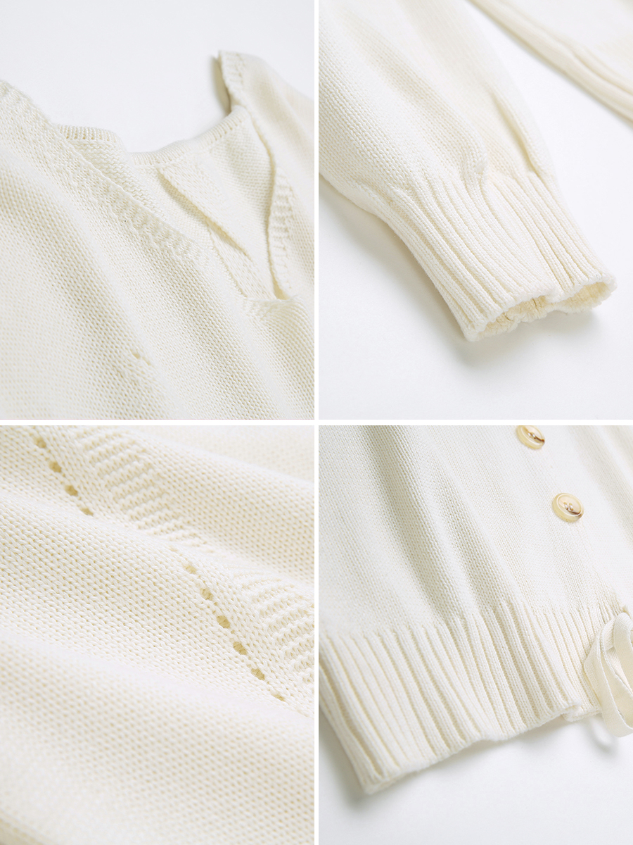 MG小象白色毛針織衫女秋冬新款寬松長袖鏤空上衣學生v領套頭毛衣