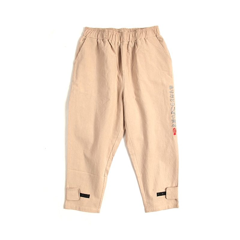 原創港風潮男休閑九分褲哈倫褲日系寬松港風棉麻褲
