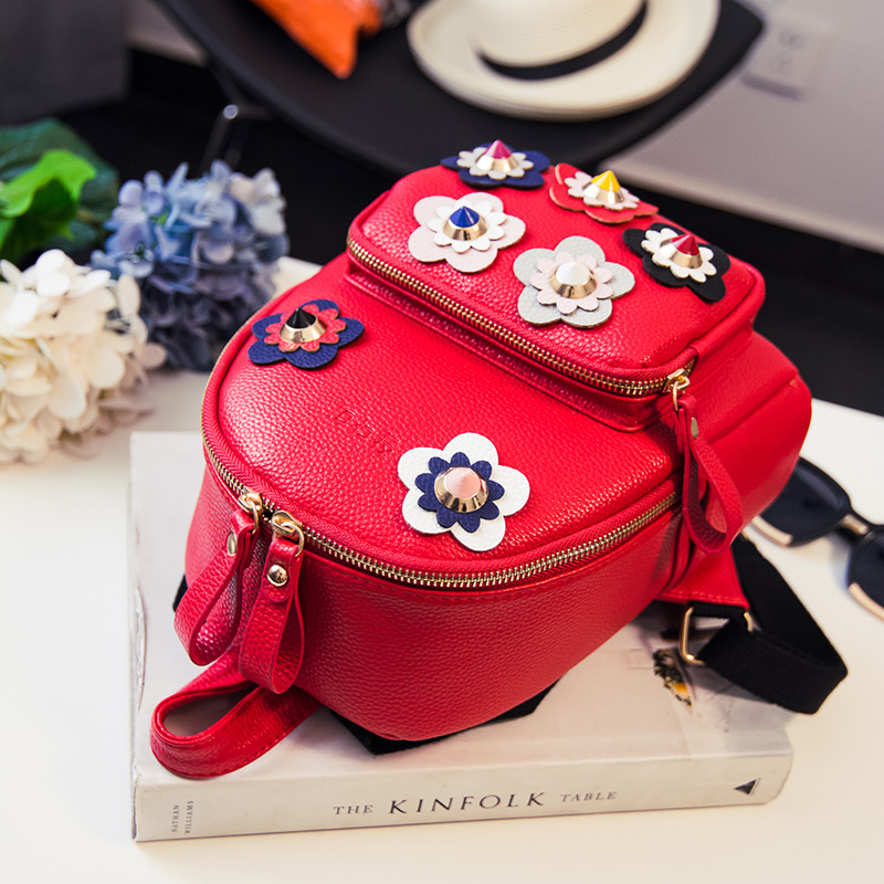 韓版小清新少女女孩可愛休閑背包小學生大童學院風旅行雙肩包pu皮