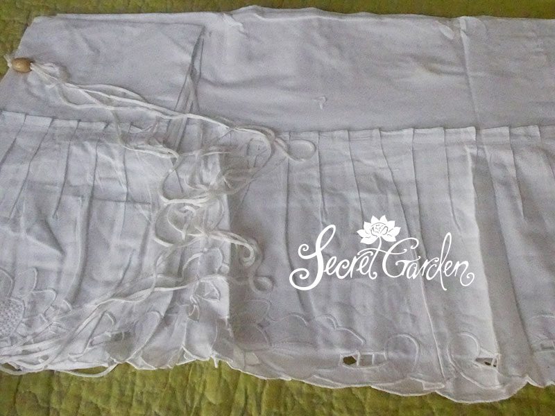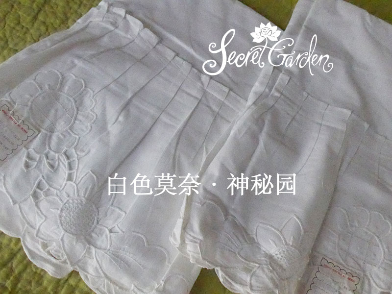 質地:白色全棉加手工繡花百褶荷葉邊