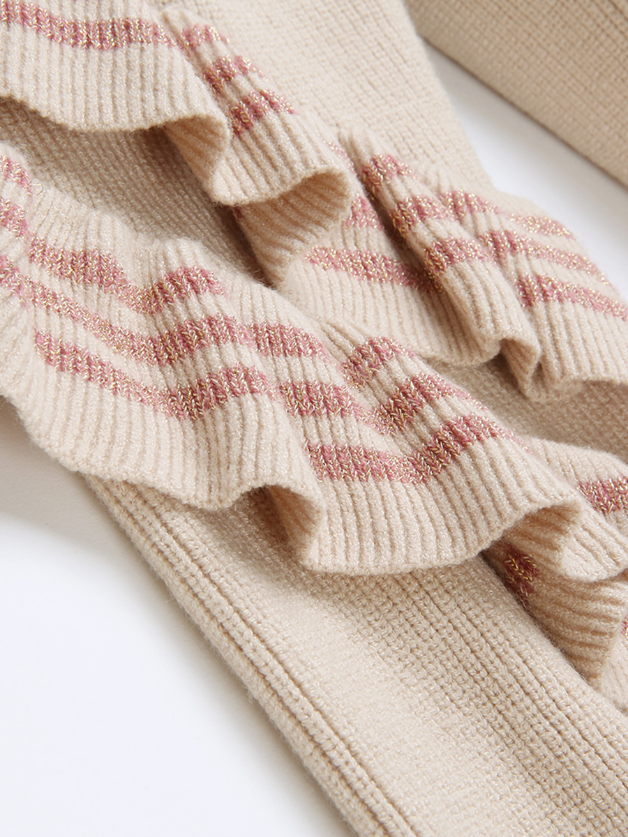 MG小象木耳邊針織衫女套頭秋冬新款休閑時尚寬松毛衣復古chic上衣