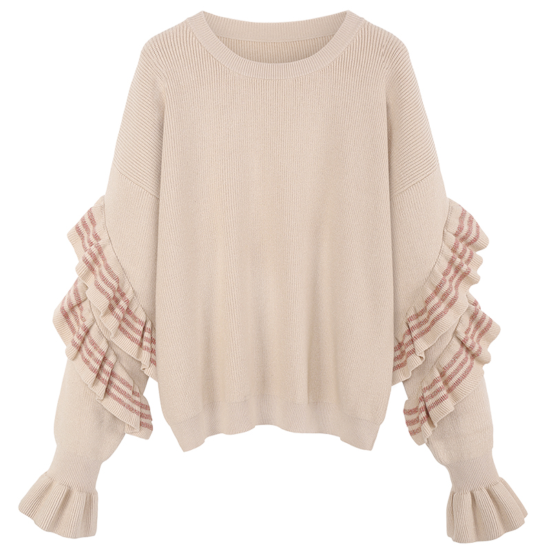 / MG小象木耳邊針織衫女套頭秋冬新款休閑時尚寬松毛衣復古chic上衣