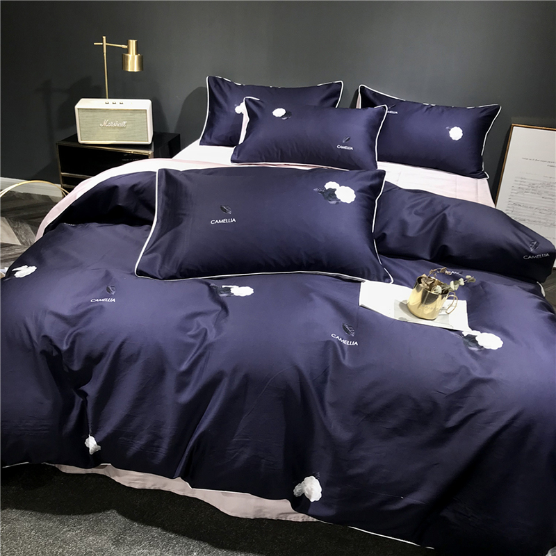 高檔60支埃及長絨棉全面貢緞四件套數碼印花簡約保暖被套床單包郵