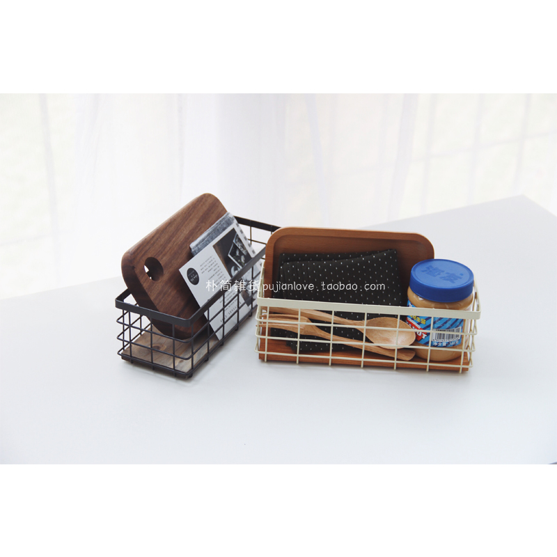 樸簡 日式復古鐵藝提手收納籃子筐桌面方形收納置物籃 桌面收納盒