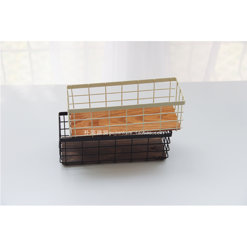 長方形黑棕鐵籃子