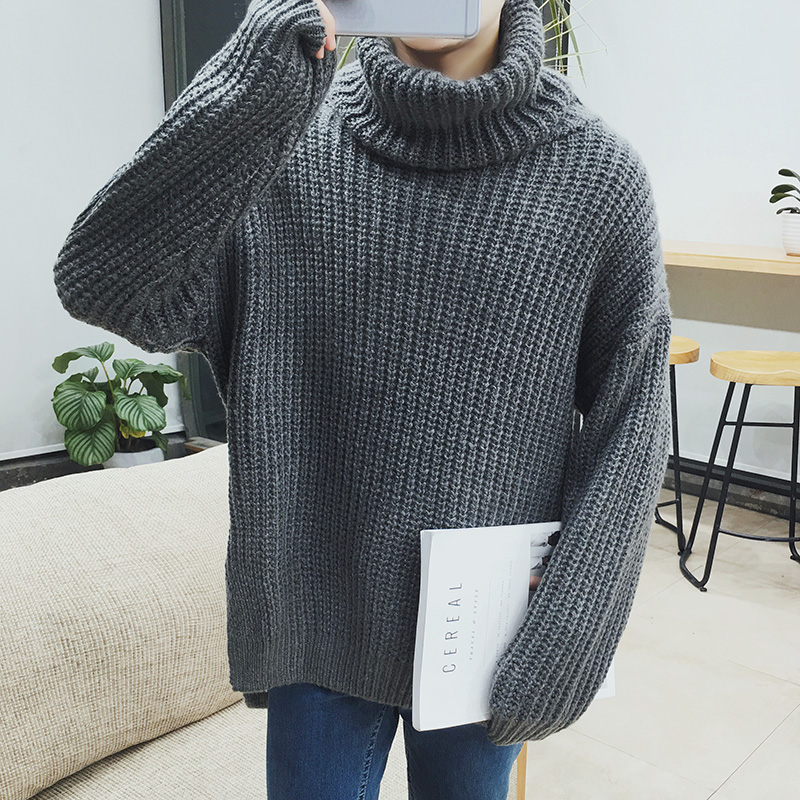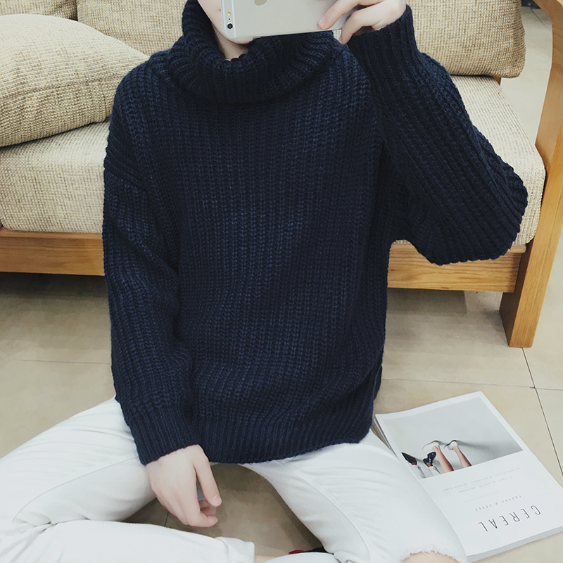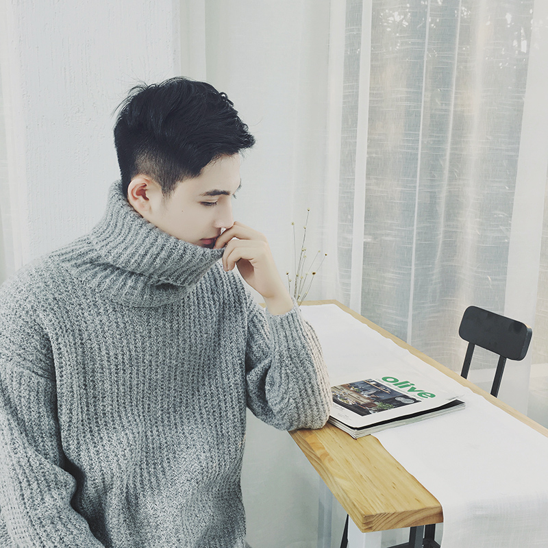 / 男裝港風純色粗線高領男士針織衫套頭加厚毛衣外套