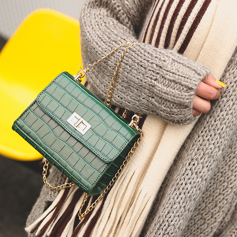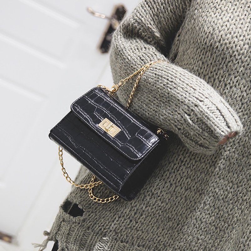 / 新款韓版鏈條包鱷魚紋手提單肩女包斜挎包女小包迷你小方包潮