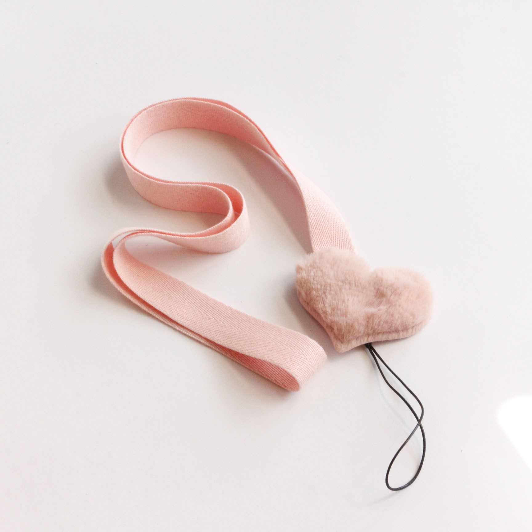 榮小姐韓國chic風甜美仿兔毛桃心掛脖繩手機防丟防摔套手掛飾包郵