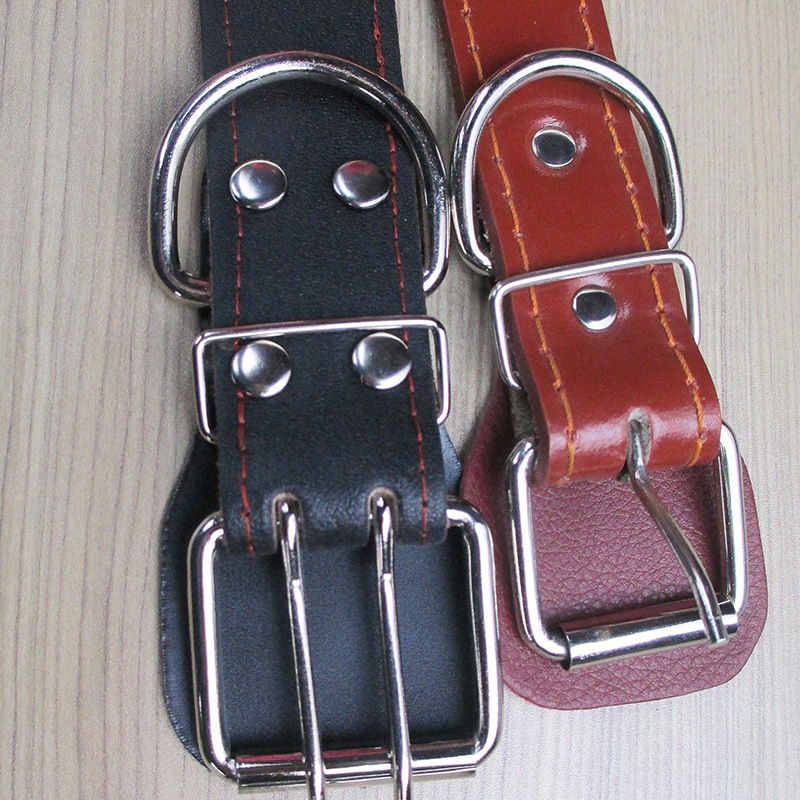 如圖:雙針扣設計雙重保險 中大型犬之選! 裝飾釘為雙排蘑菇釘鍍鋅亮白設計!, 有防磨扇形墊片