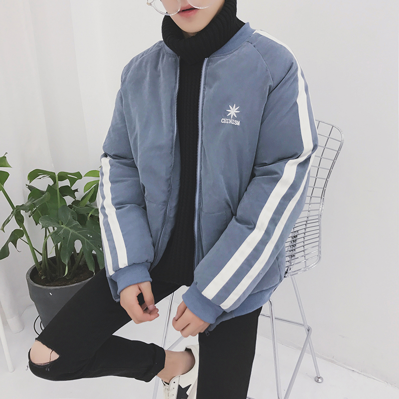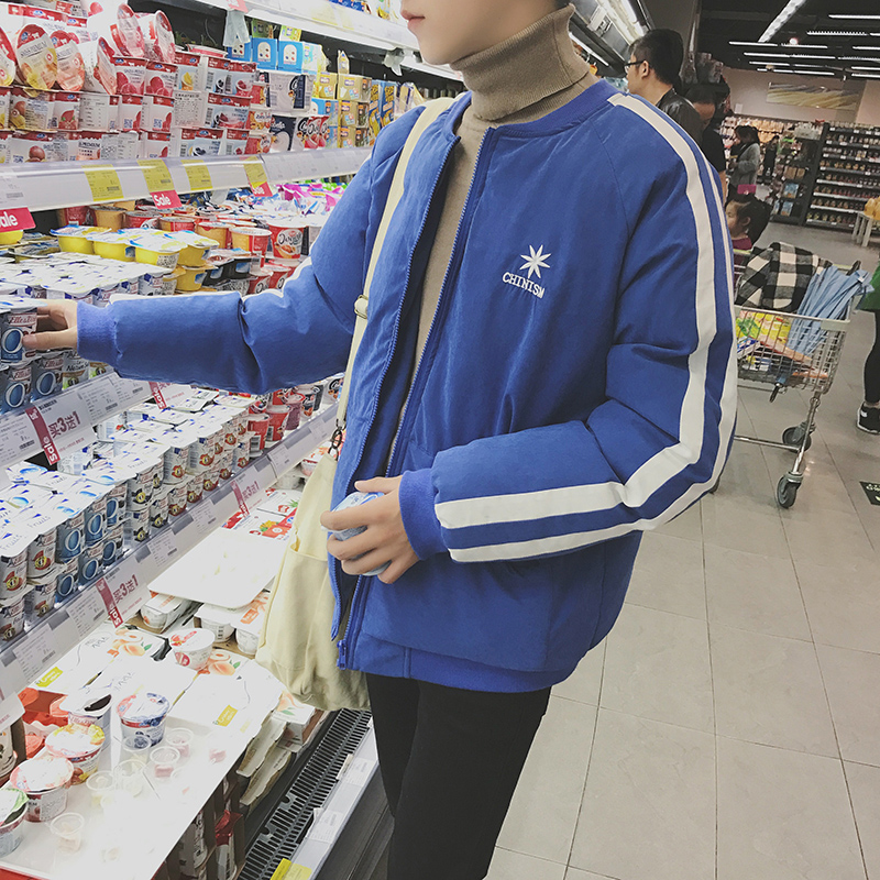 / 男裝楓葉印花韓版棒球領棉服加厚男士短款棉衣外套