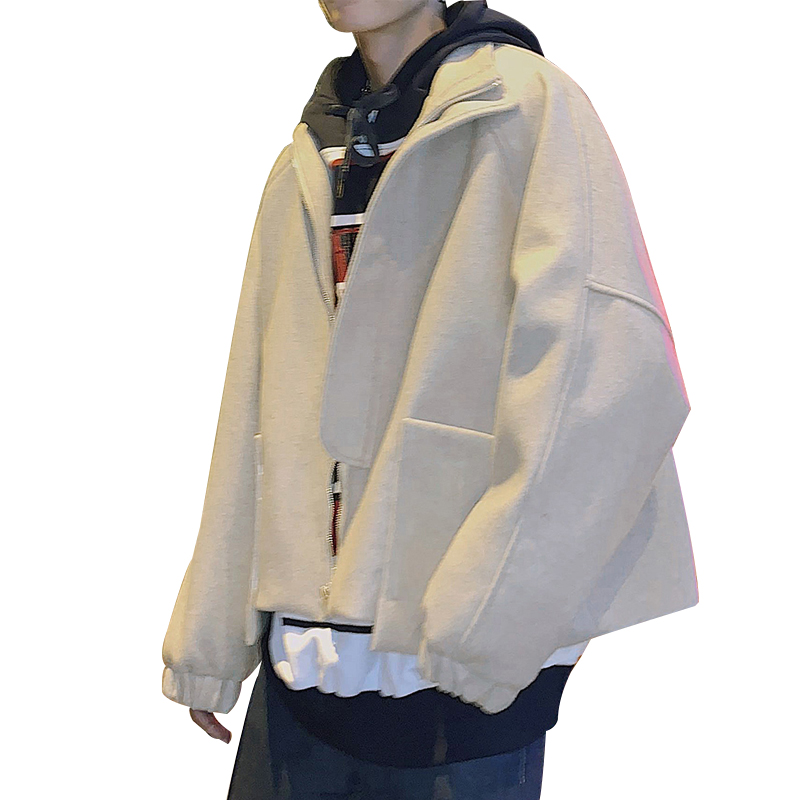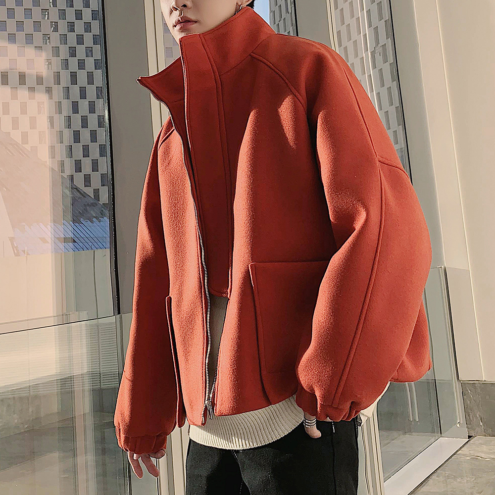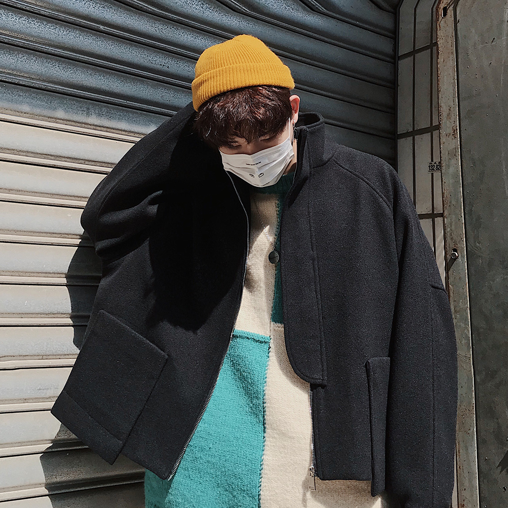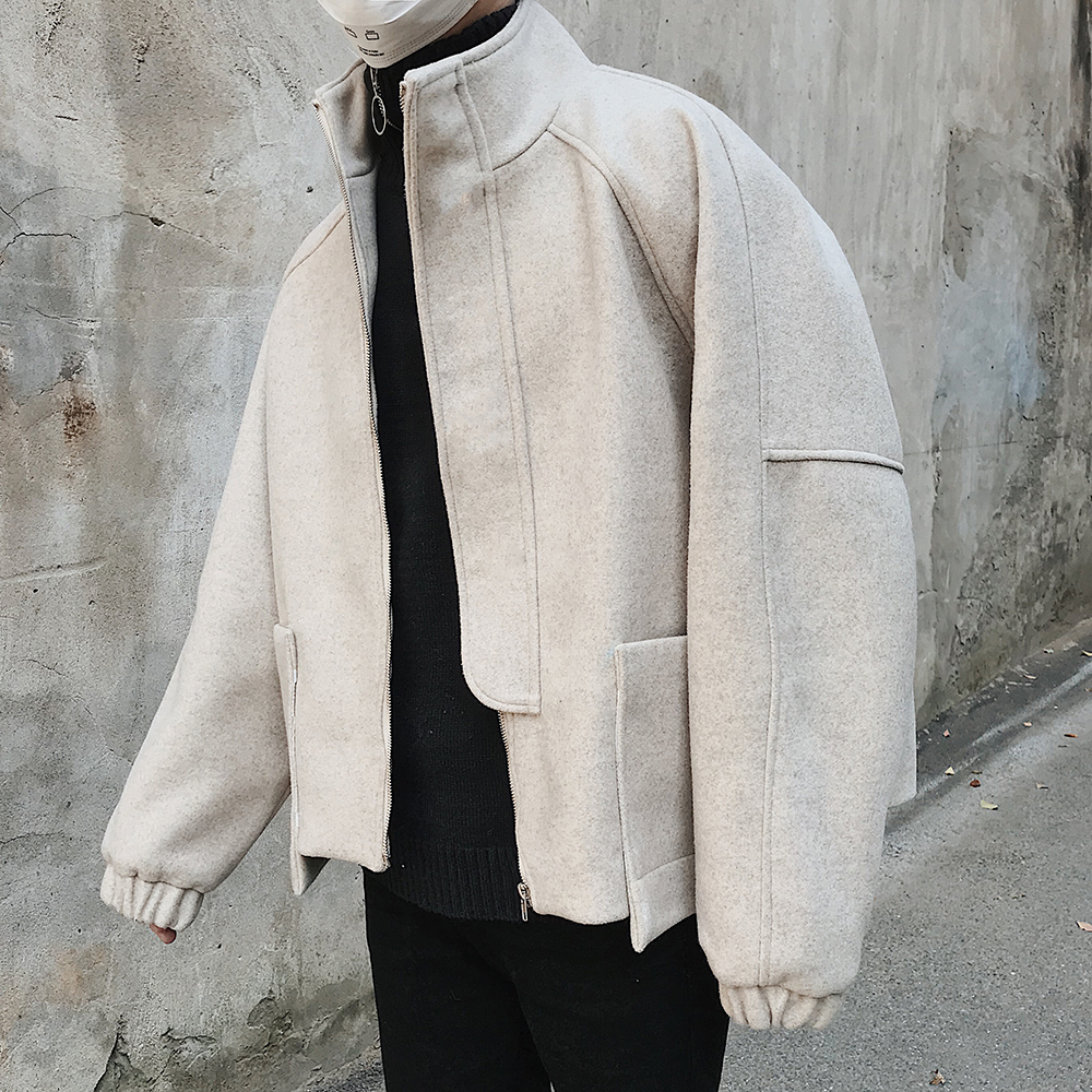 / 文藝男女店寬松短款毛呢大衣男士冬季韓版外套男秋季潮流風衣男裝