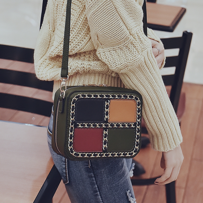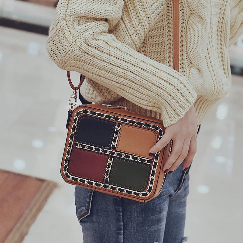 新款潮撞色盒子包迷你小方包韓版鏈條女包單肩斜挎包女小包包