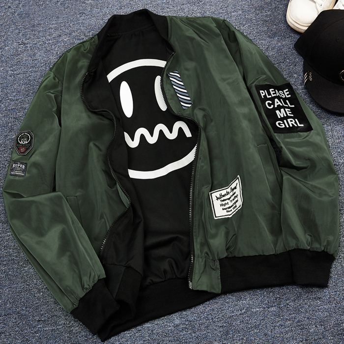 / 2017秋季新款青少年夾克寬松棒球服笑臉雙面穿薄款外套韓版潮學生
