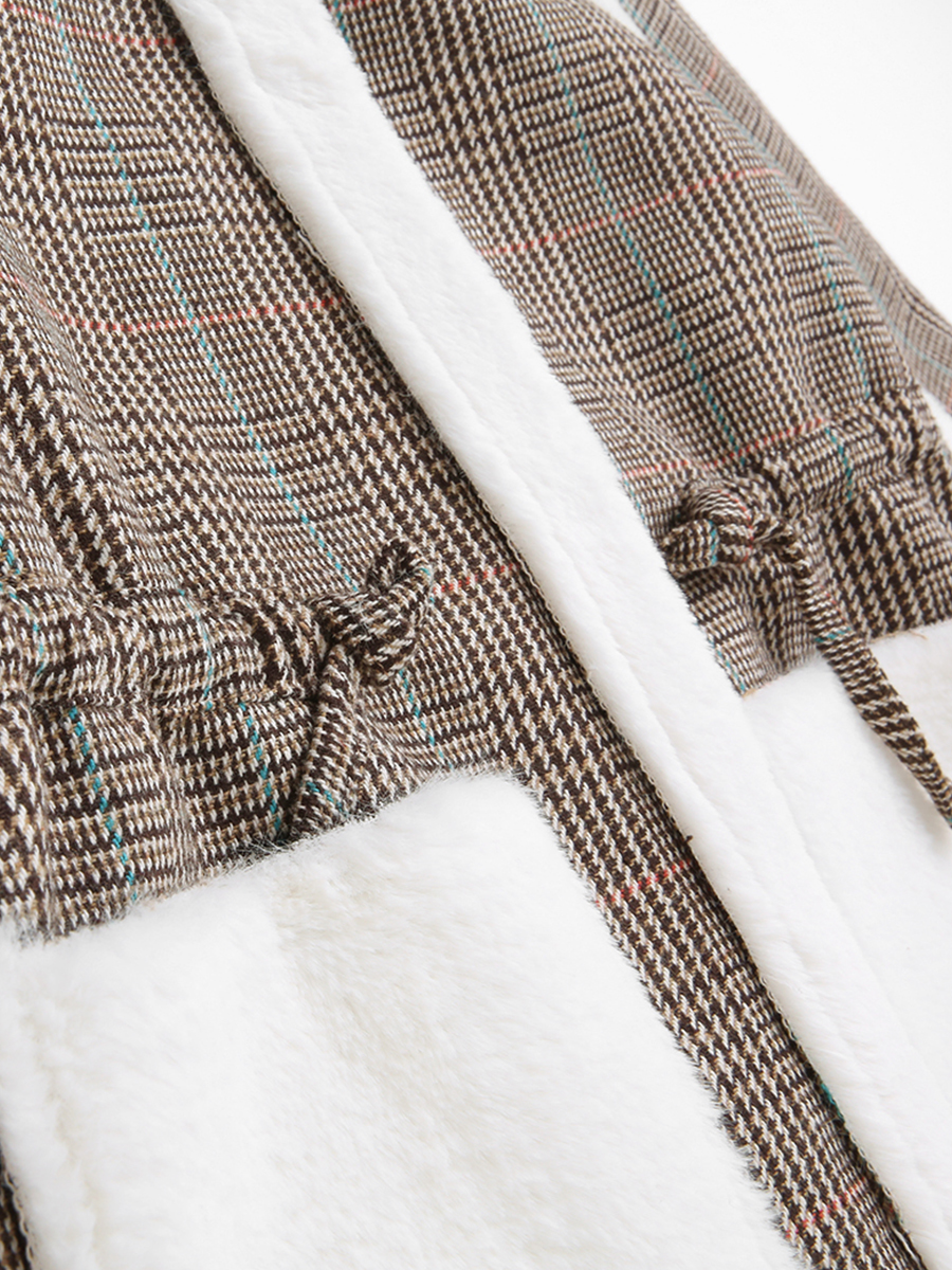 / MG小象皮毛一體大衣女中長款寬松冬季新款2018流行格子毛呢外套潮