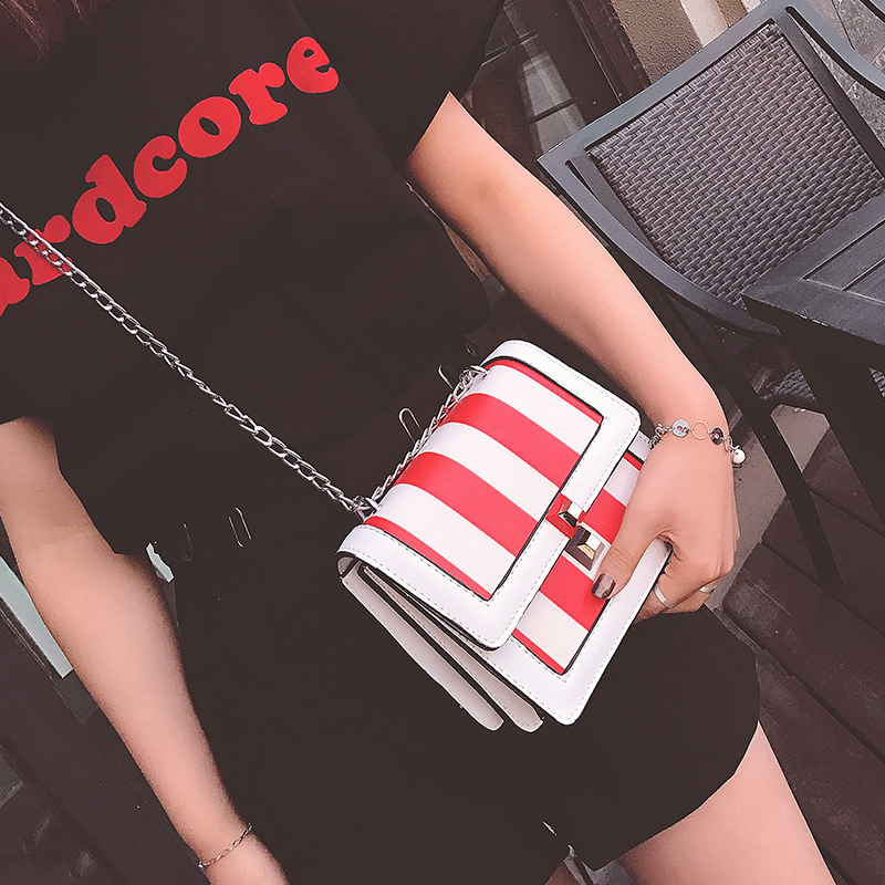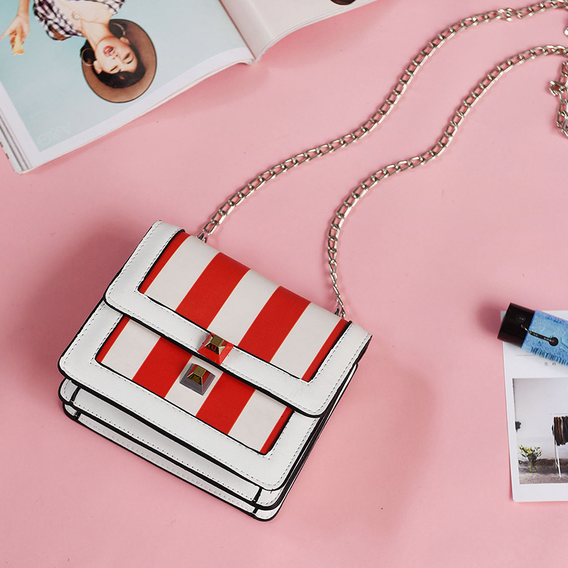 / 包包女新款潮韓版夏季迷你小方包撞色鏈條風琴包單肩斜挎女包