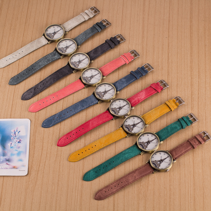 正品韓國時尚百搭牛仔帶女手表鐵塔手表中學生閨蜜皮帶學生表