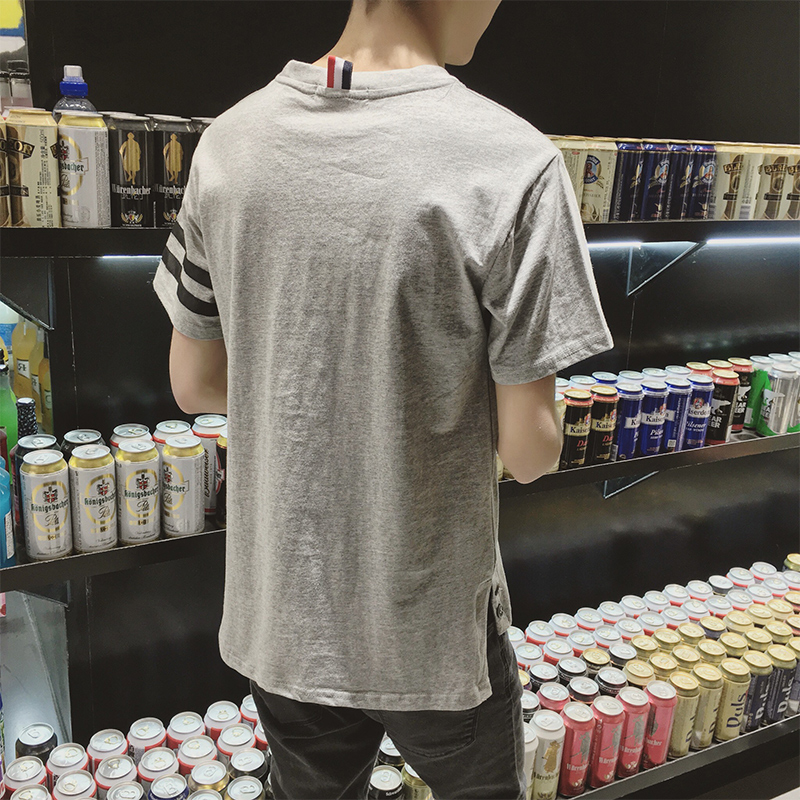 夏裝新款拼色修身圓領半袖港風夏季男士短袖T恤