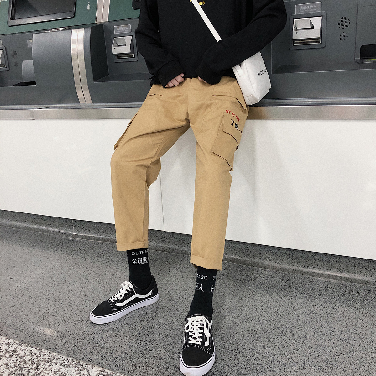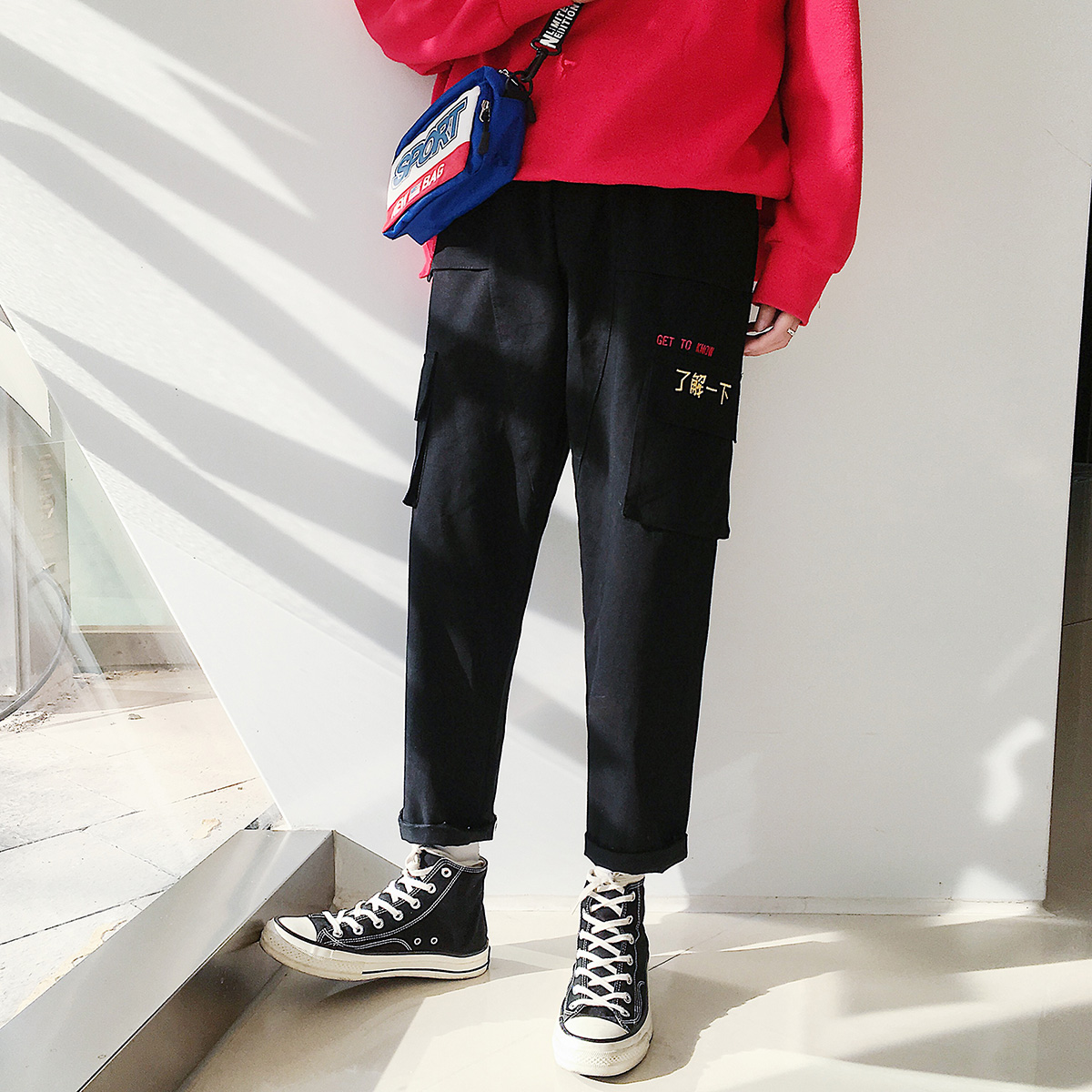 文藝男女店百搭潮牌男士休閑褲秋季韓版褲子男新款潮流九分褲男褲