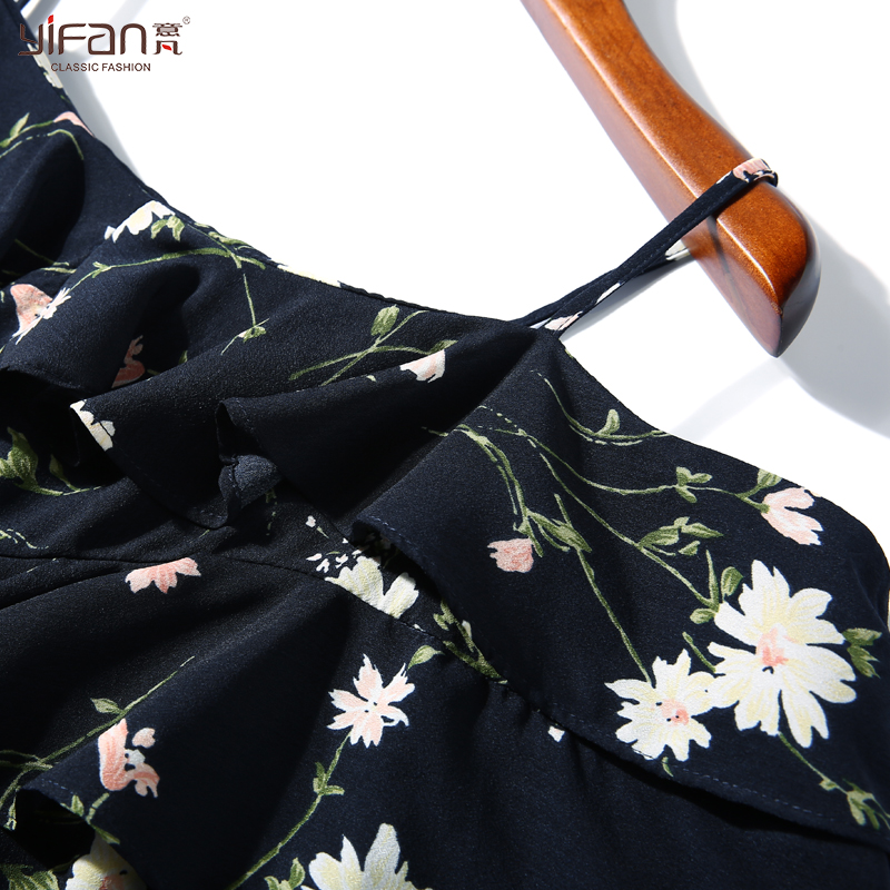 / 雪紡衫短袖夏季新款甜美荷葉邊吊帶一字肩露肩顯瘦碎花上衣女