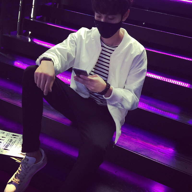 這款夾克有點擴版型。落肩設計。棒球領設計。都是今年韓風最流行的元素。