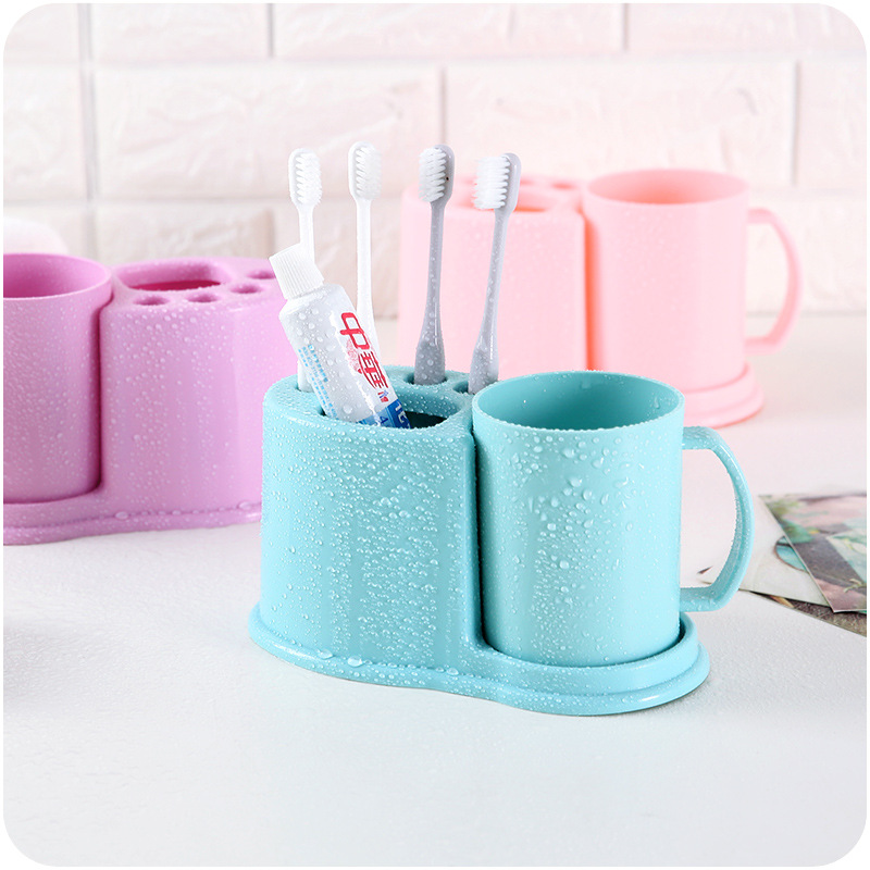 創意家用情侶塑料漱口杯套裝衛浴多功能男士女士牙刷牙膏置物架子