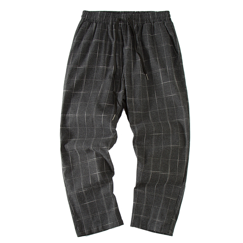 / 秋季韓版潮流休閑褲男士格子薄款褲修身小腳褲九分褲原宿風褲子男