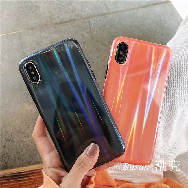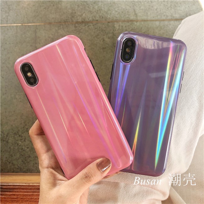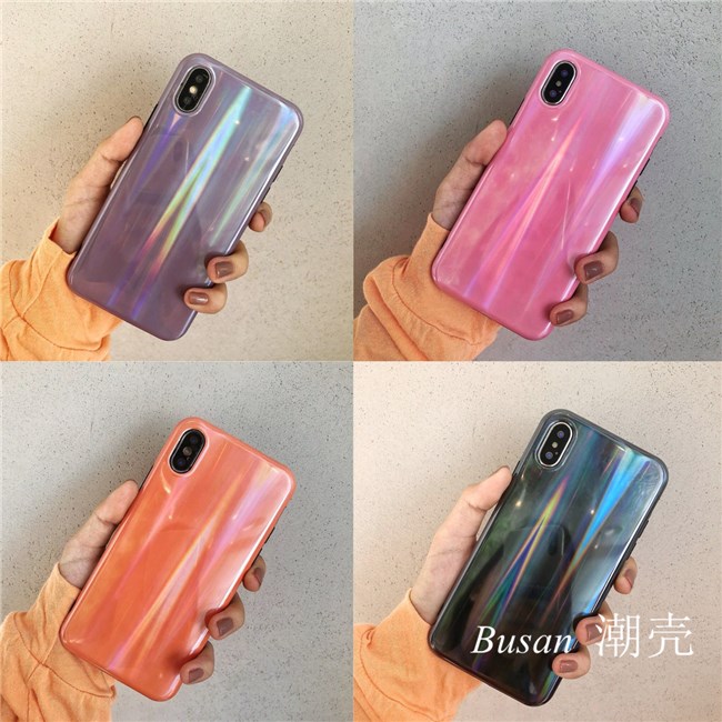 簡約純色藍光鐳射蘋果X手機殼iphone8plus/7/6S全包軟殼男女款潮