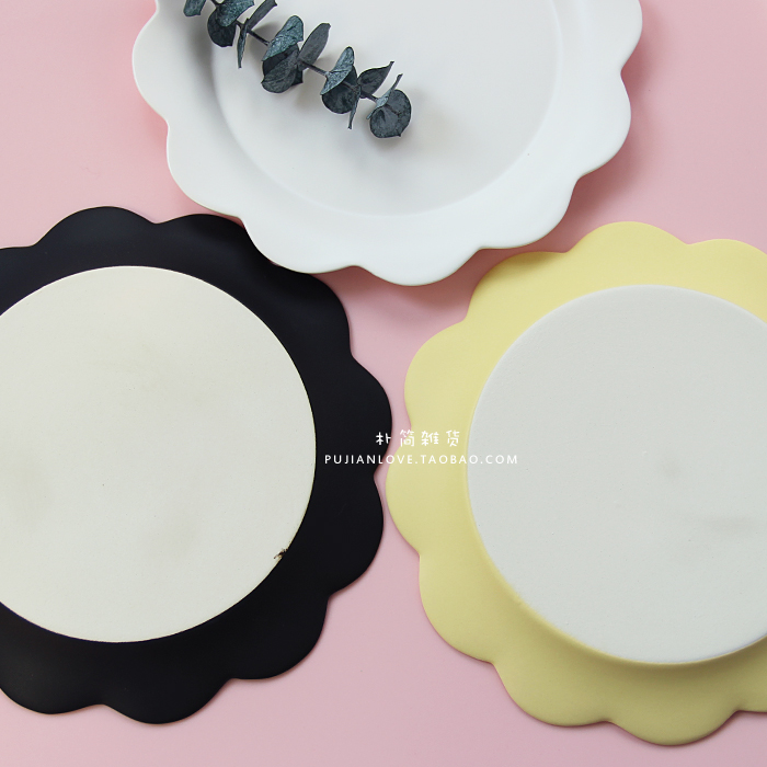 / 樸簡 日式純色花邊啞光磨砂8寸陶瓷餐具盤子 早餐碟拍攝道具