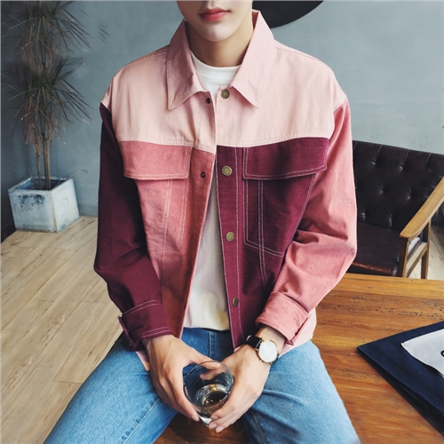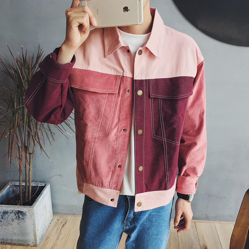 男裝新款韓版秋裝燈芯絨拼接撞色男士夾克外套