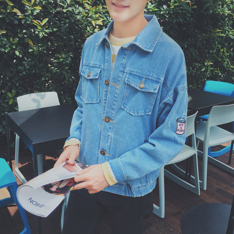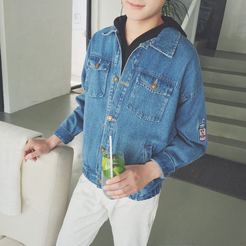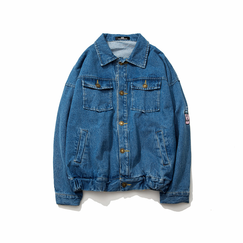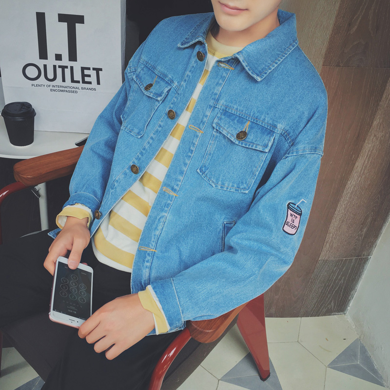 / 春季新款卡通飲料瓶男士韓版寬松牛仔衣夾克外套