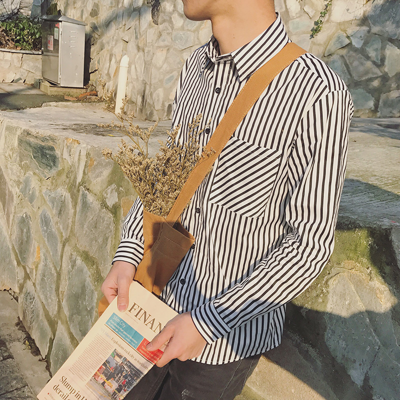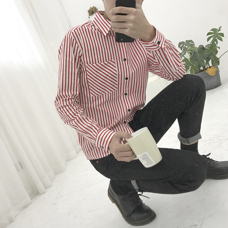 / 男裝韓版小清新純棉男士襯衣細條紋長袖襯衫上衣