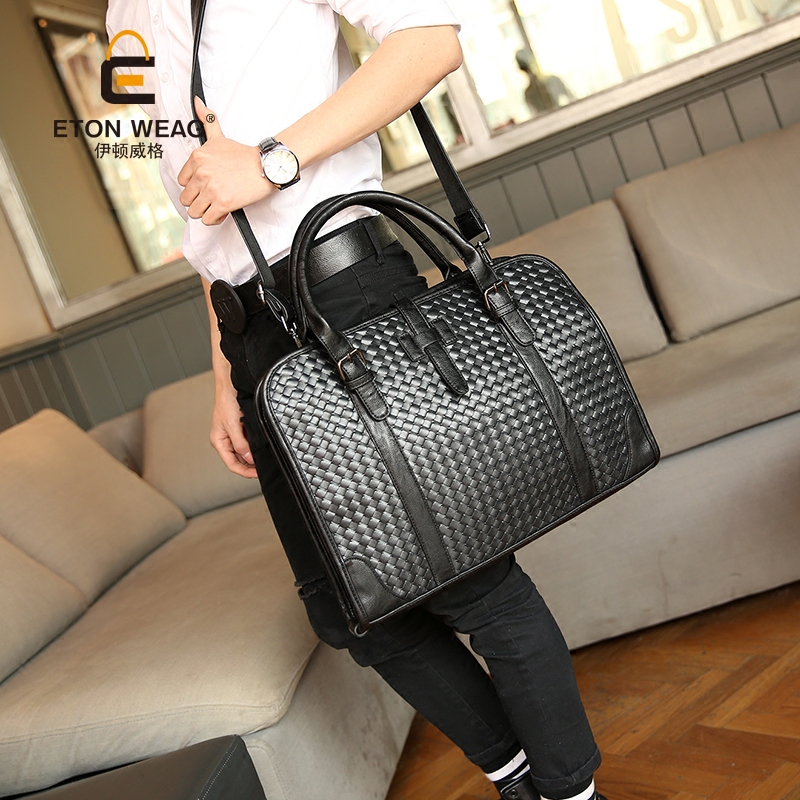 原創新款手工編織男包韓版男士休閑手提包單肩斜跨包商務公文包