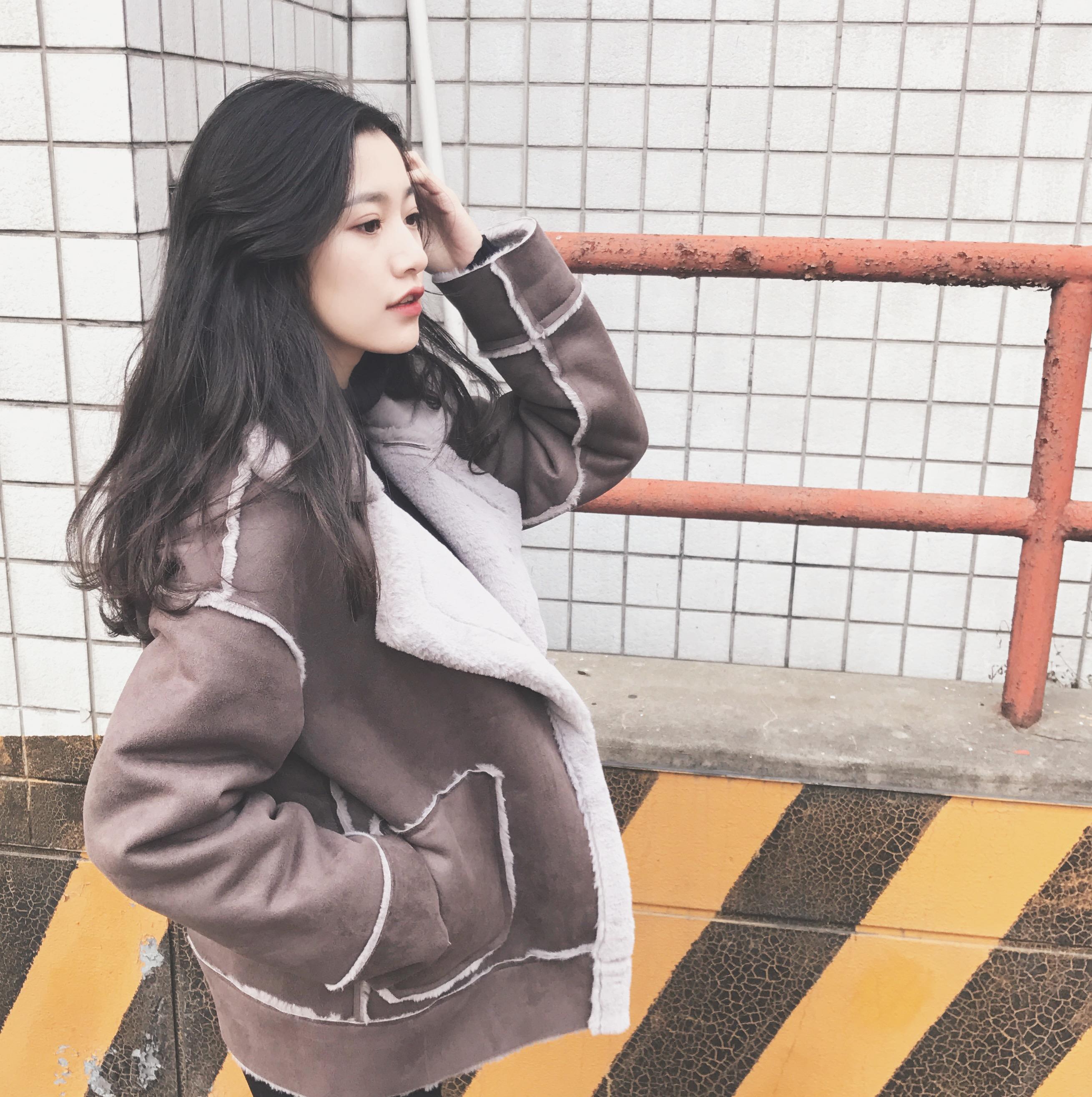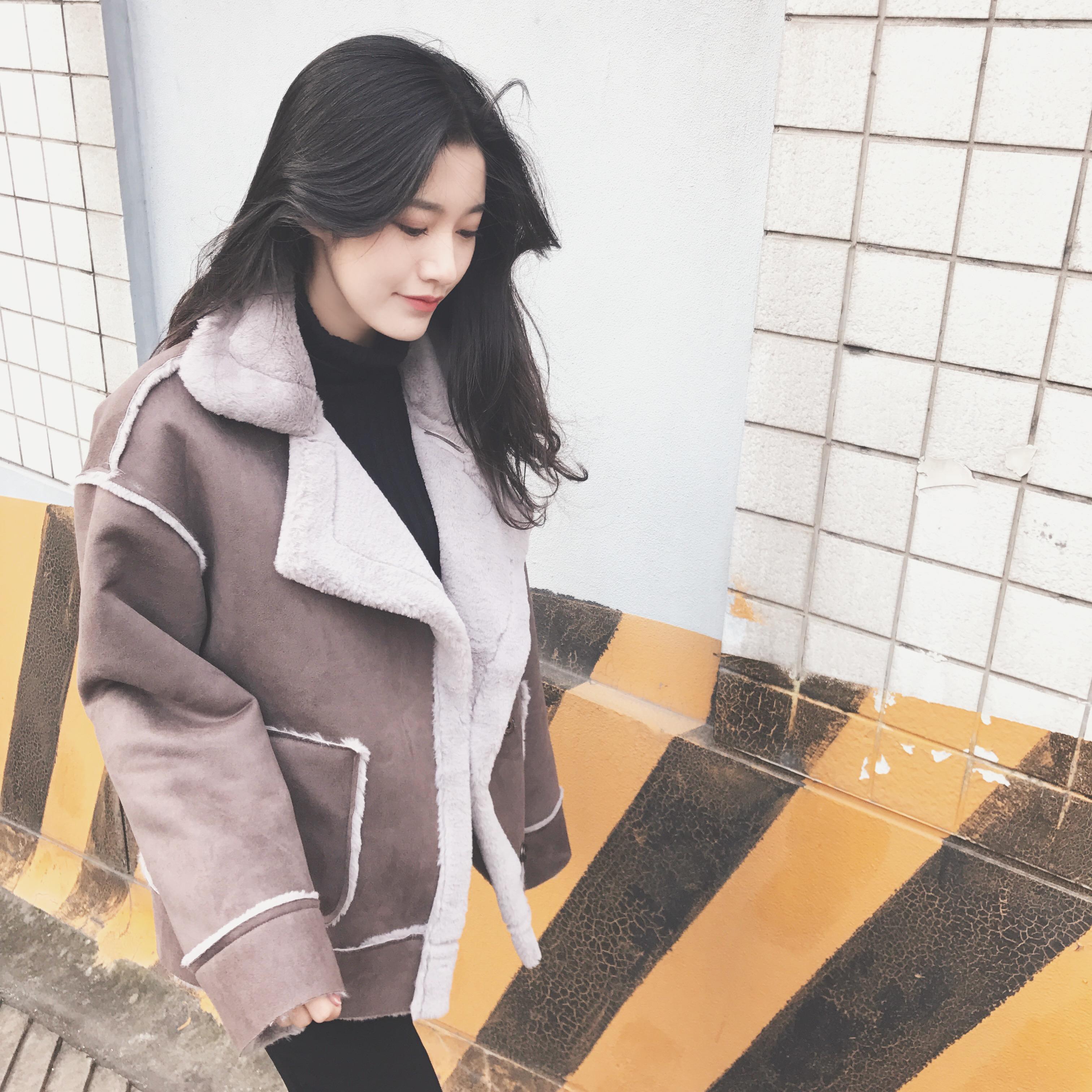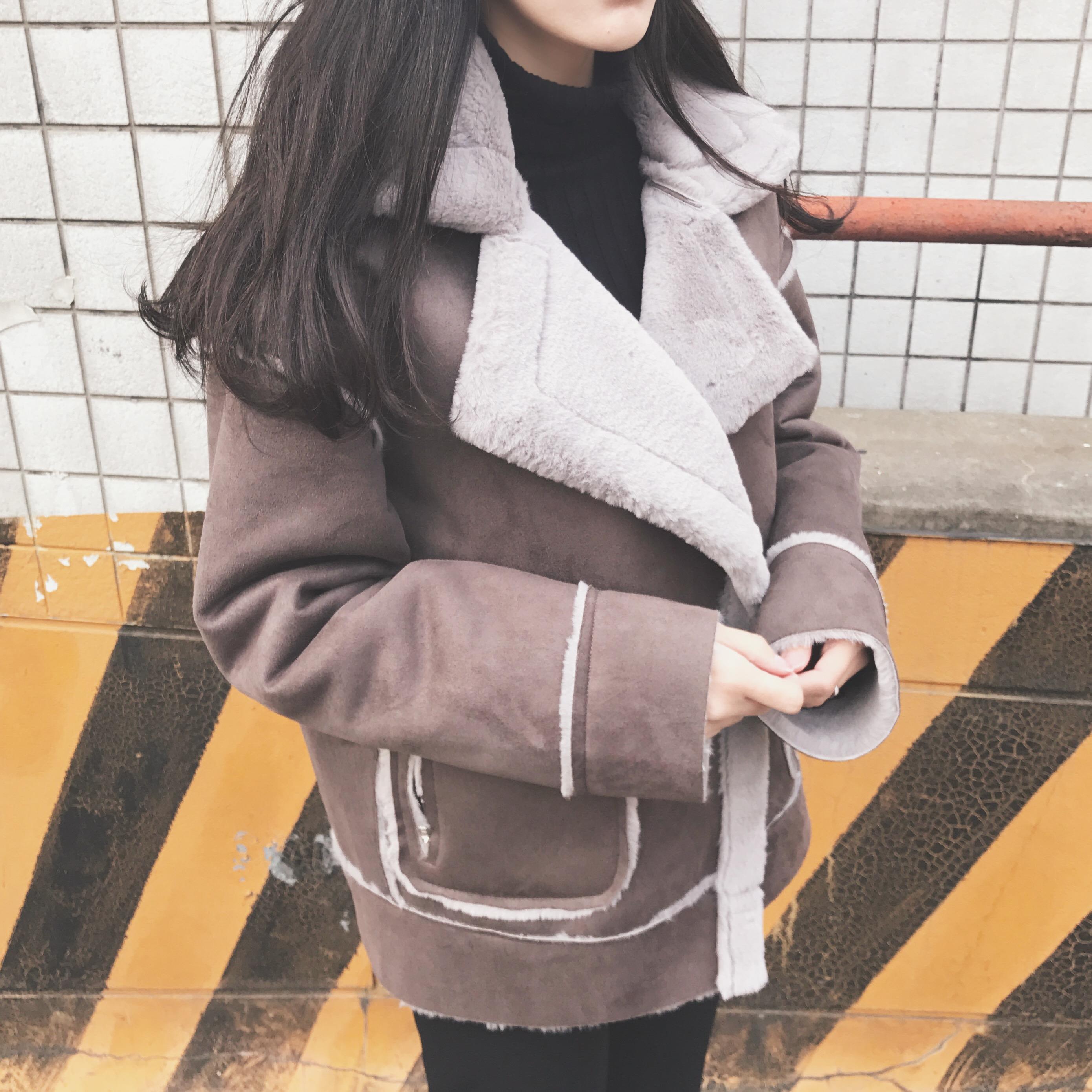 / 秋冬韓版復古拼接口袋紐扣大翻領加絨加厚棉衣外套女裝上衣