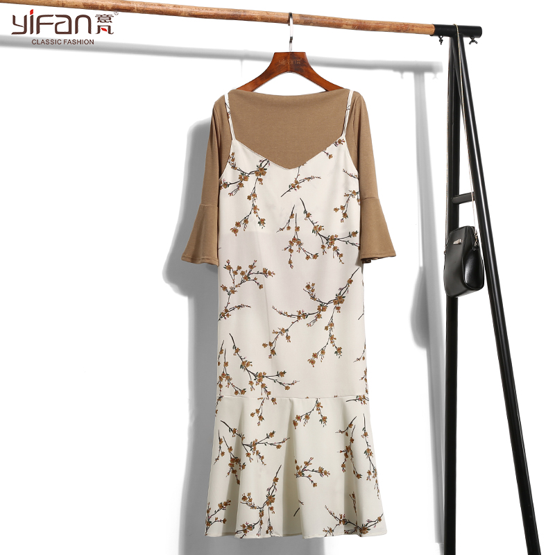 / 春夏季新款韓國雪紡碎花裙中長款V領吊帶裙連衣裙長裙顯瘦女