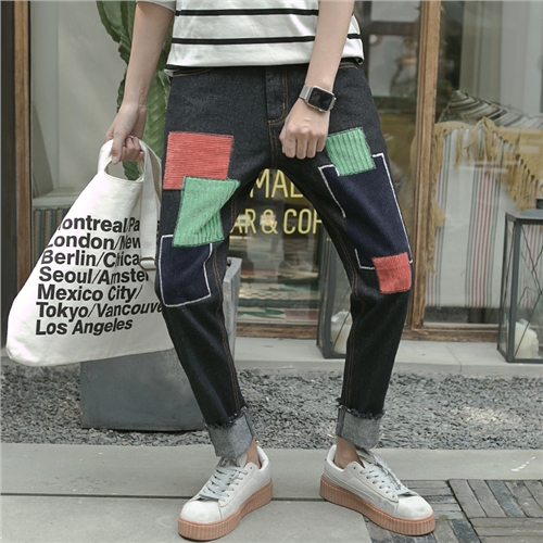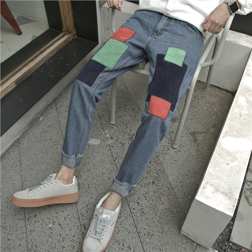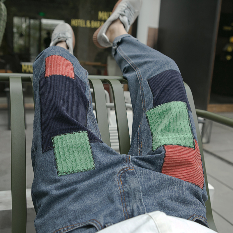 / 春冬新款日系復古燈芯絨撞色男士長褲哈倫褲牛仔褲