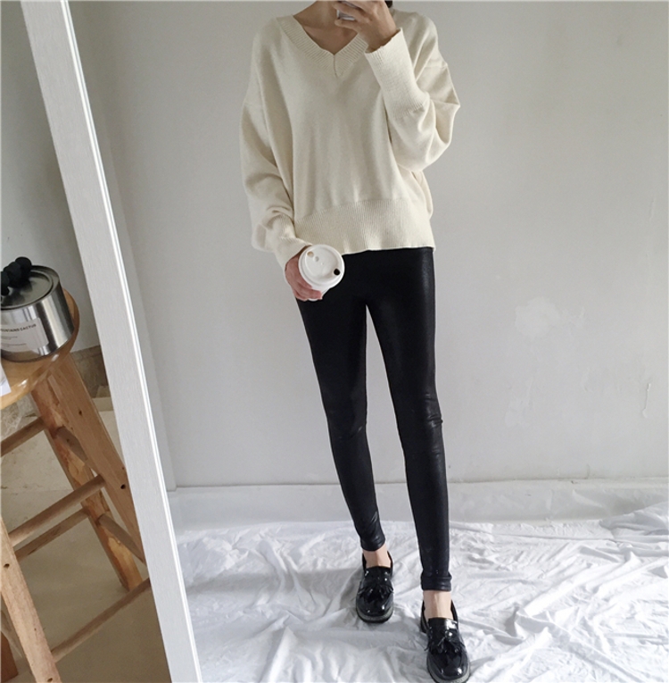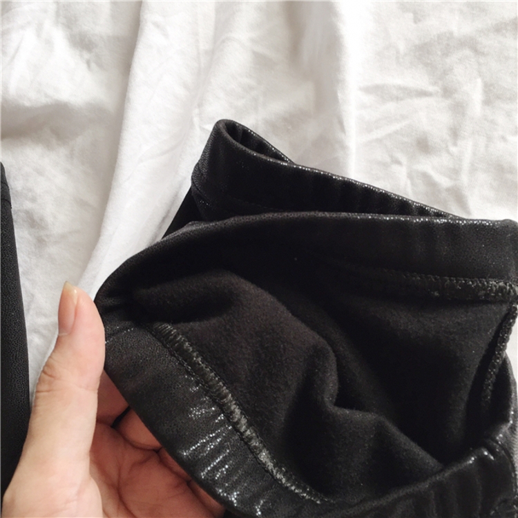 冬季必備的一款加絨的打底皮褲