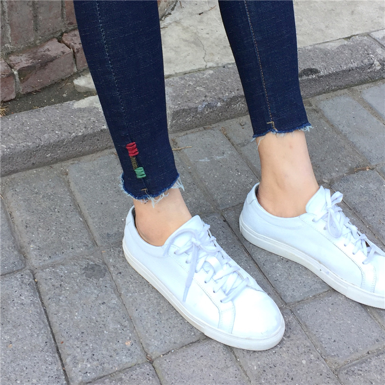 褲腳側縫處的小點綴——撞色套結工藝和金屬字母裝飾