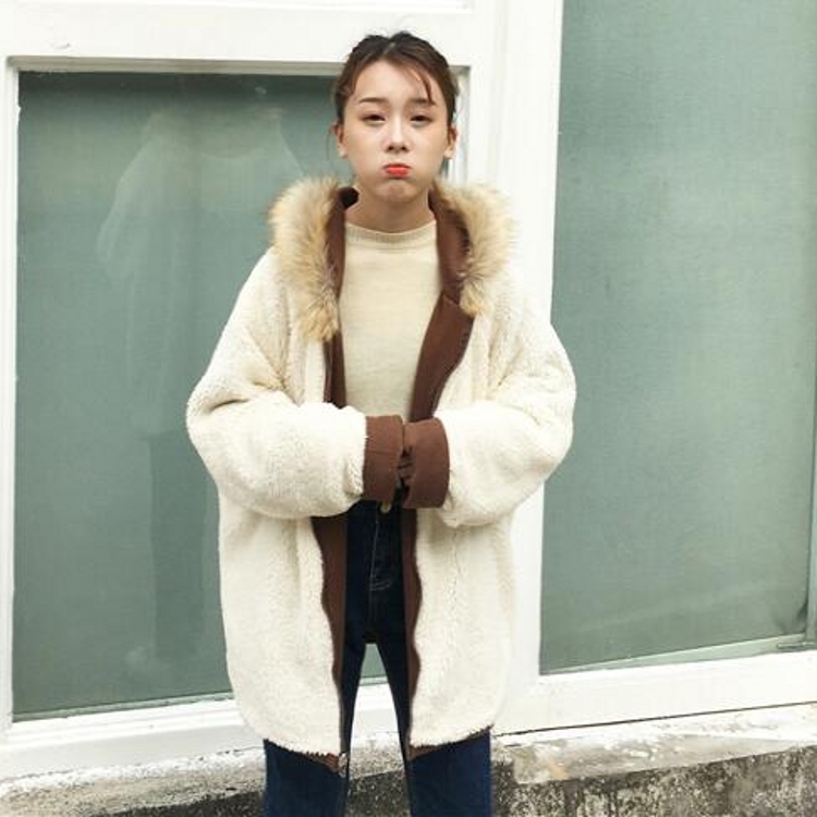 袖子和衣身全都是羊羔毛的!兩面都可以穿!羊羔毛外穿好Q萌
