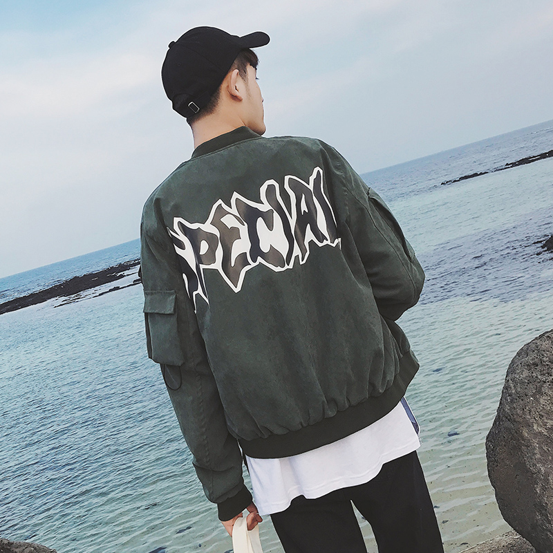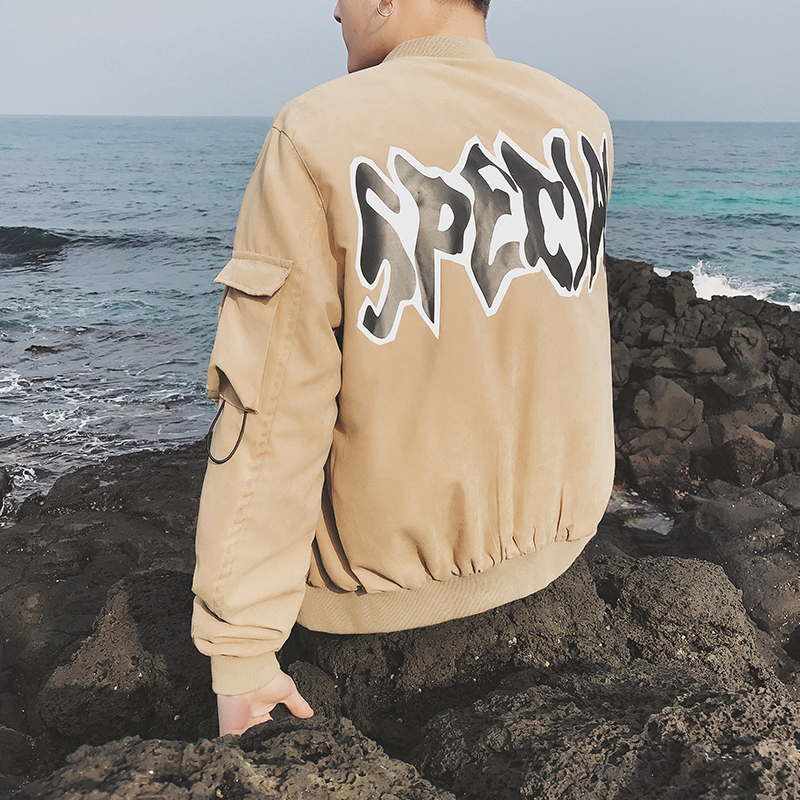 男裝背后圖案印花春季棒球領男士短款夾克外套潮