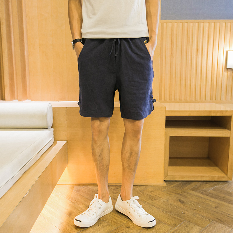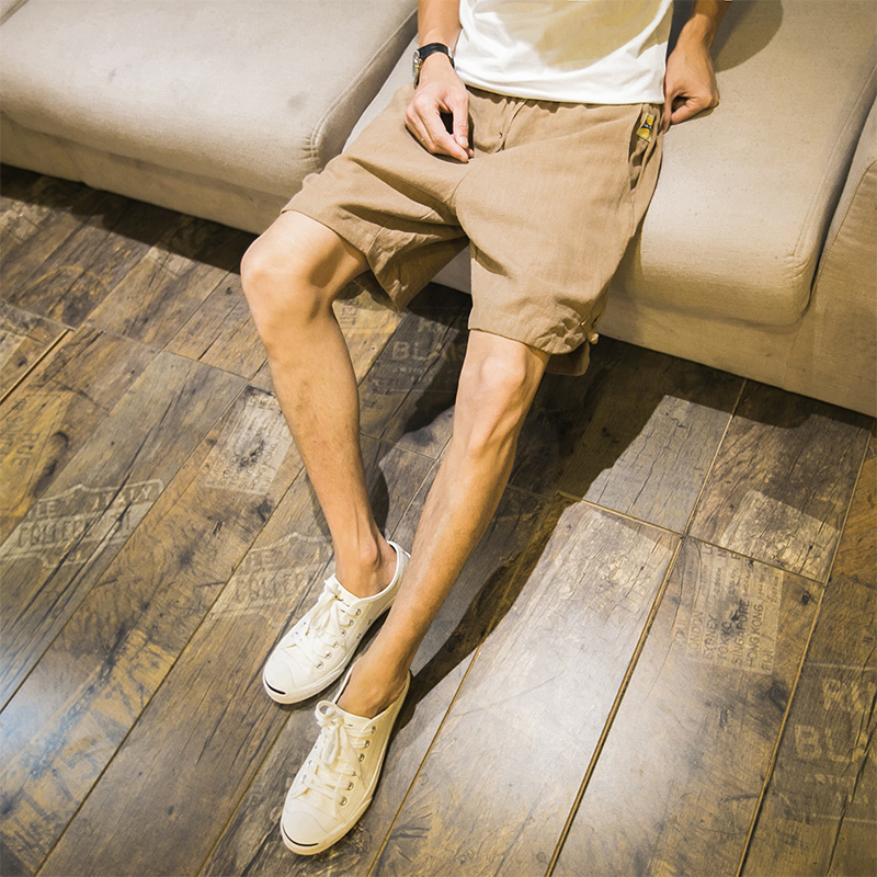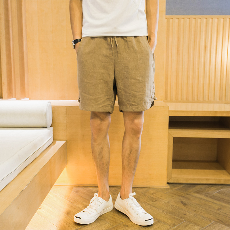 / 新品韓版純色側開叉亞麻男士短褲休閑中褲麻褲